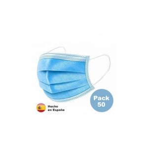 Mascarilla higiénica 3 capas. Celeste. Caja de 50 unidades